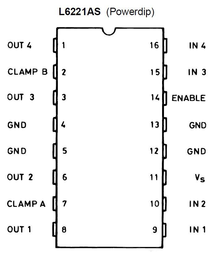 The L6221A monolithic quad darlington switch is designed for high current, high voltage switching applications. Each of the four switches is controlled by a logic input and all four are controlled by a common enable input. All inputs are TTL-compatible for direct connection to logic circuits. Each switch consists of an open-collector darlington transistor plus a fast diode for switching applications with inductive device loads. The emitters of the four switches are commoned. Any number of inputs and outputs of the same device may be paralleled.