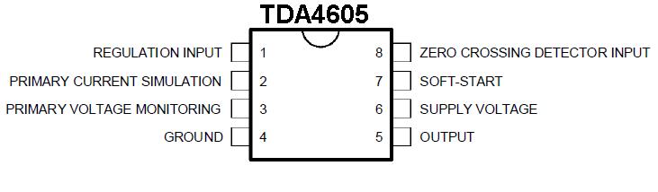 The IC TDA4605 controls the MOS Power Transistor and performs all necessary regulation and monitoring functions in free running flyback converters. Since good load regulation over a wide load range is attained, this IC is particularly suitable for Consumeras well as Industrial Power Supplies.